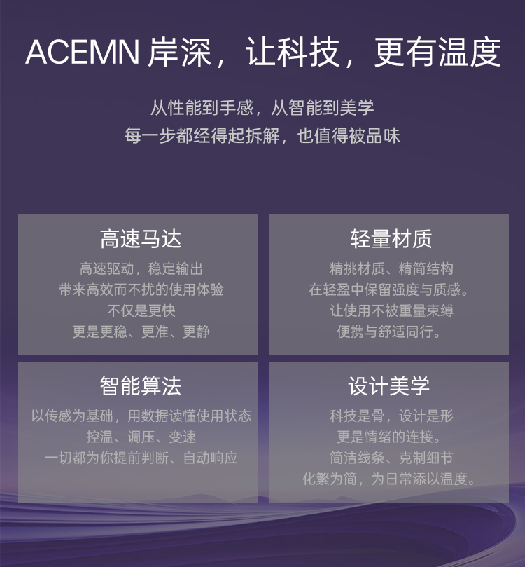 ACEMN岸深H2 Air高速吹风机——轻盈、快干、护发一步到位不打扰的风,更懂头发的情绪。当日常变得简单、变得柔和,生活也会悄悄被治愈。3